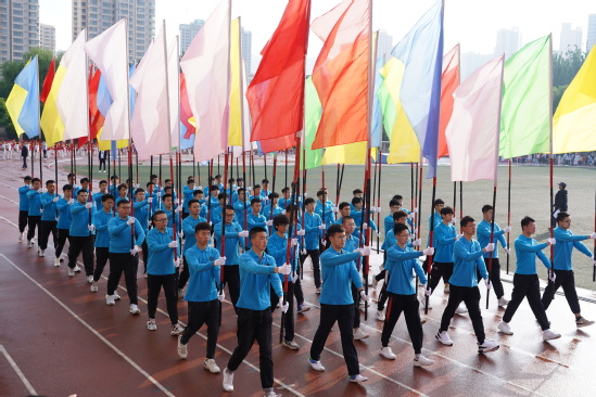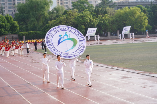 在激昂的运动员进行曲中,国旗队、彩旗队、会徽方队、鼓号队、花束队、标语牌、宣传画方队、留学生方队、裁判员方队、各学院各单位运动员方队依次走过主席台,各方队队员步履矫健、口号嘹亮,充分展现出西北师大师生的蓬勃朝气和昂扬斗志。