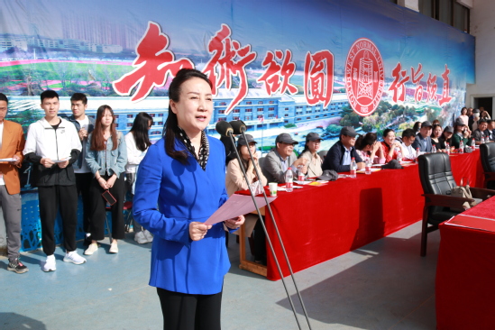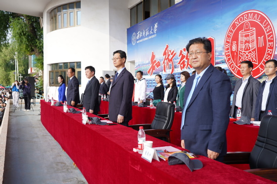 “‘恰同学少年,风华正茂。’现在走向主席台的是教育学院代表队,一代代教育学人传承先辈学者的‘胡杨林’精神,永不言弃,他们‘不忘初心,牢记使命’,他们‘立德树人、心无旁骛’,在立德树人的舞台上形成了优势明显、特色鲜明的学科方向。”