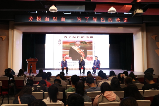 5月24日,西北师大邀请全国劳动模范、第二代治沙人代表、全国优秀护林员、古浪县八步沙林场场长郭万刚和第三代治沙人代表郭玺来校作了题为《为了绿色的承诺》的专题讲座,学校相关部门负责人、各学院专职辅导员及学生代表300余人参与讲座。讲座由全国先进工作者、全国优秀教师、党和人民满意的好老师、化学化工学院莫尊理教授主持。