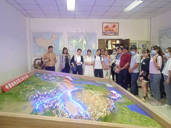 师生们在讲解员的带领下认真参观学习了中国陆地边境口岸展、中国民族版图沙盘、中华人民共和国国门展、丝路文化交流史资料中心和铸牢中华民族共同体意识心理演示室等内容。