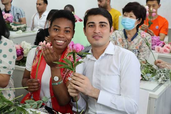 63日,西北师大国际文化交流学院举办“花心花语”主题花艺活动。来自韩国、巴基斯坦、吉尔吉斯斯坦、老挝、俄罗斯、苏丹、尼日利亚、中国等8个国家的60师生亲身感受插花艺术。