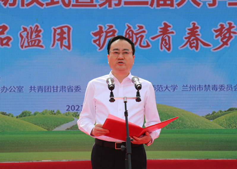 6月8日上午,“防范毒品滥用·护航青春梦想”为主题的“甘肃省全民禁毒宣传月启动仪式暨第二届大学生禁毒知识答题活动”在西北师大举行。甘肃省副省长、省公安厅党委书记、厅长余建出席仪式并讲话。