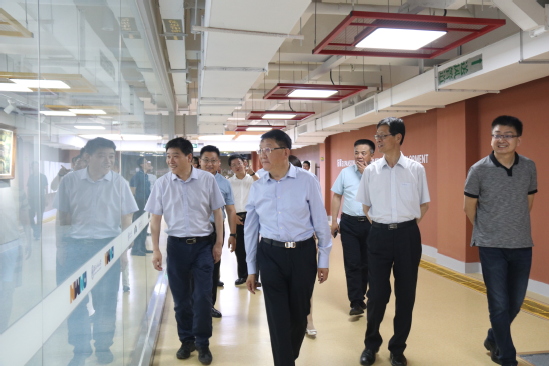 唐晓明一行先后深入学校棫樸苑学生创新创业园区、文科实训楼信息展示大厅、网信办、融媒体中心、校史馆博物馆等地,详细了解学校在科学研究、社会服务、基础设施建设、信息化建设等方面的新成就。