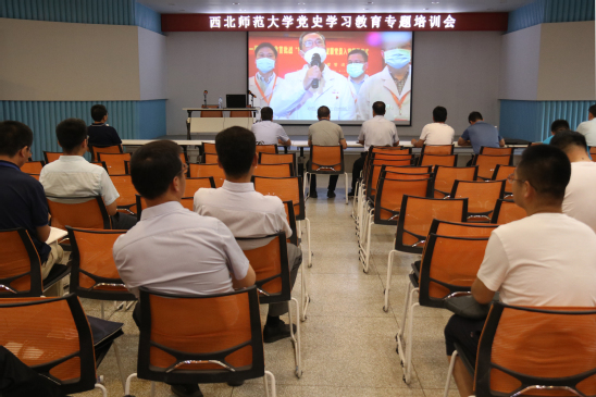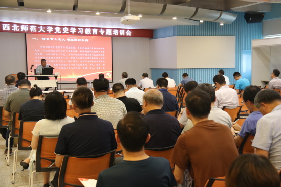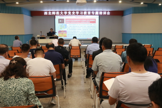 7月17日至18日,西北师大举行党史学习教育专题培训班。纪委书记、监察专员马庆主持培训报告会。全校副处级以上干部及相关部门负责人参加专题培训。