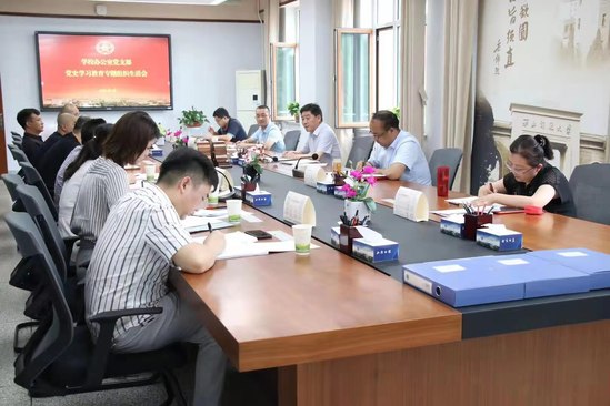 会上,学校办公室党支部通报了党史学习教育情况并作对照检查。支部党员交流学习体会,逐一开展检视剖析。