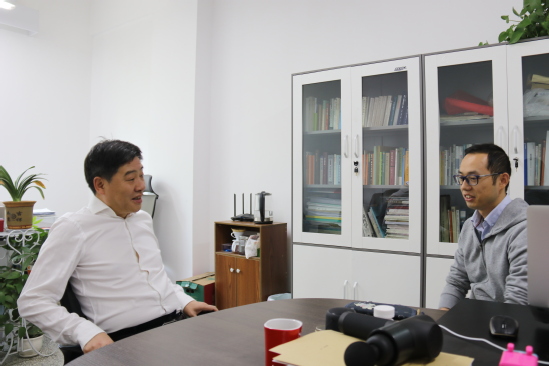 在哲学学院,张俊宗与胡好老师亲切交谈,勉励他做“四有”好老师,用爱心、知识和智慧点亮学生心灵,当好学生成长成才的引路人;要争做立德树人的大先生,融通中西学问,言传身教,率先垂范,为全校青年教师做榜样。