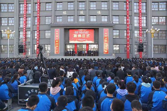 仪式上,杨军、张生勇为教育帮扶项目西北师大附中环县一中联合实验班揭牌,西北师大附中负责人、环县一中负责人签订了《西北师大附属中学与环县一中结为友好校 帮扶指导环县一中提升教育教学质量协议书》。