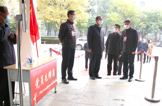 张世珍一行先后前往学生餐饮文化中心、兰天学生公寓、学生公寓综合体项目现场等重点区域,实地查看餐厅防疫、学生就餐、校门管控、“软隔离”路线、公寓防疫、线上教学及重点项目施工情况,并听取相关工作汇报,与学生、志愿者进行交流。