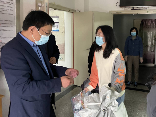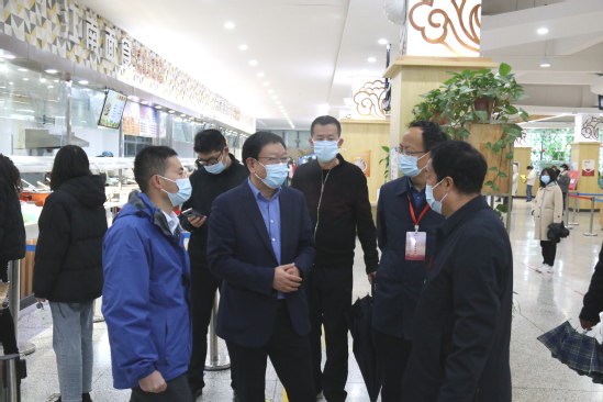 雷江红一行前往知行校区,实地查看学生宿舍消杀管理、持卡出入、网上授课以及餐厅防疫、学生就餐等工作情况,并详细了解落实省委省政府和省教育厅关于疫情防控部署情况