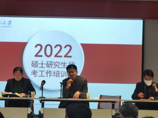 12月23日,西北师大组织召开2022年全国硕士研究生招生考试监考工作培训会。党委常委、党委统战部部长、副校长韩高年出席会议并讲话,纪委(监察专员办公室)纪检监察一室负责人、研究生院全体工作人员及承担我校考点监考和考务工作的老师共300多人参加培训会。