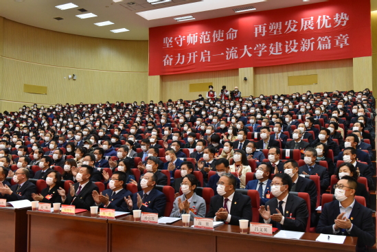 大会的主题是:高举中国特色社会主义伟大旗帜,以习近平新时代中国特色社会主义思想为统领,坚持社会主义办学方向,坚持立德树人根本任务,立足高等教育新发展阶段,贯彻高等教育新发展理念,融入高等教育新发展格局,坚守师范使命,再塑发展优势,着力构建高质量教育体系,团结带领全校师生员工,在全面振兴中西部高等教育的历史进程中,奋力开启一流大学建设新篇章!