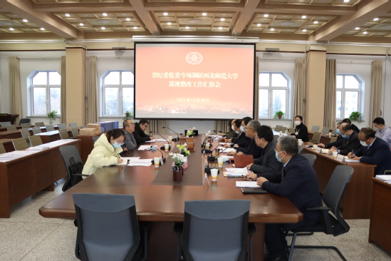 12月30日上午,省纪委监委第八监督检查室主任陈中伟一行来校调研巡视整改工作情况。西北师大校长刘仲奎,党委副书记刘玉泉,党委常委、纪委书记、监察专员马庆,党委常委、党委组织部部长吕文英,学校办公室、党委宣传部、党委统战部、人事处(党委教师工作部)负责人及纪检监察机构全体干部参加汇报会。
