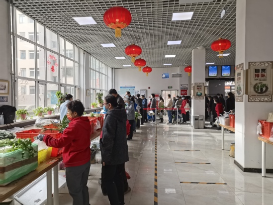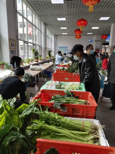 教职工在东苑餐厅蔬菜供应点采购生活用品