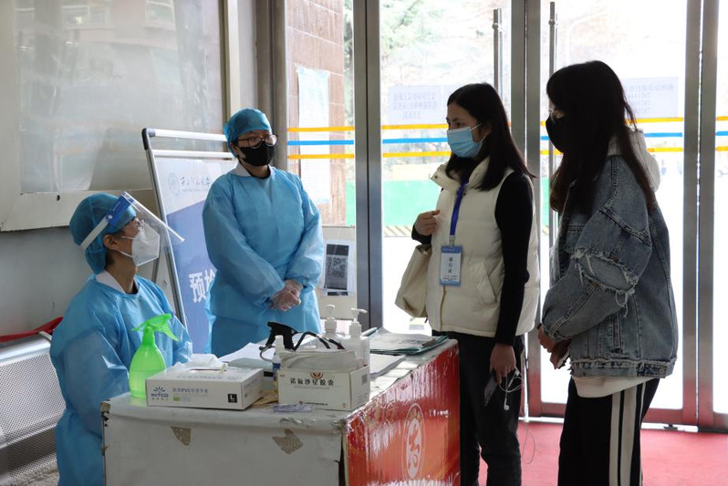 早晨8:0046岁的校医院主治医师董翠珍准时来到预检分诊点与同事交接,他们需要详细将24小时内每一个病人的病情发展、用药量、注意事项核对登记。“预检分诊点需要医生24小时值守,经常要在凌晨将发热学生送至指定医院的发热门诊,经分诊初步筛查排除疑似新冠后,方可接回校医院临时留观点。在留观点,还需要我们对他们的病情进行合理的诊断医治,每一个步骤都马虎不得。”董翠珍说。从疫情发生以来,她就和同事们“战”在一起,举全力、用真心医治患者。即使从校医院到她的家中仅需要一分钟不到的路程,20多天的时间里,她却没有回过一次家,见过一次家人。