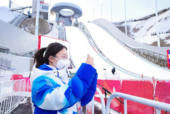 冬奥会期间,冀雅君担任张家口赛区古杨树场馆群运行团队、国家跳台滑雪中心志愿者主管,负责报道志愿服务动态。作为“志愿者的志愿者”,冀雅君将自己教育技术专业知识与摄影特长发挥到赛事服务、报道宣传工作中,带领团队着手制作志愿者信息库,并用镜头和文字记录下“雪如意”场馆中387名志愿者奉献的身影,书写了冬奥志愿服务的精彩篇章,让志愿者自信的微笑成为最美丽的名片。