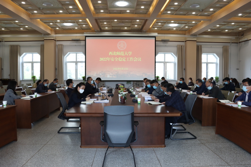 412日下午,西北师大召开2022年学校安全稳定工作会议。校长刘仲奎出席会议并讲话,党委副书记刘玉泉主持会议,校领导邓小娟、韩高年出席会议。学校安全稳定工作小组成员单位及相关学院、部门负责人参加会议。