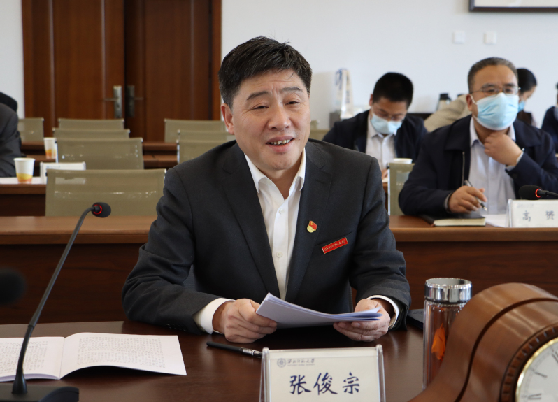 张俊宗对调研组来校调研表示欢迎,并从党的创新理论武装、守好意识形态阵地、落实党委领导下的校长负责制、推动全面从严治党向纵深发展、健全基层党组织建设、有效转化政治建设成果等六个方面汇报了学校加强政治建设工作情况,并表示将持续落实管党治党主体责任,以政治建设为统领强化政治监督,不断提升治理体系和治理能力现代化,以优异的成绩迎接党的二十大和省十四次党代会的胜利召开。