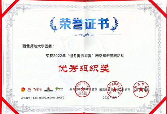 西北师大团委荣获2022年“迎冬奥,我来赛”网络知识竞赛活动优秀组织奖