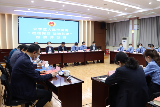 李朝东一行还参加了安宁区检察院“检校同行法治共建”检查开放日活动,参观考察了12309检察服务中心、检察听证室、检察事务中心、案件管理中心、“南风”未检工作室、新媒体工作室及党建文化长廊等办公区域,详细了解各功能区域职能、工作流程、实际运行等。