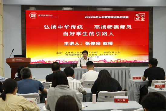 青年教师“要时刻铭记教书育人的使命,甘当人梯,甘当铺路石,以人格魅力引导学生心灵,以学术造诣开启学生的智慧之门。”6月13日,在新入职教师培训班上,党委书记张俊宗从回顾学习党的十八大以来习近平总书记关于教育工作的重要论述,为新入职教师作了题为《弘扬中华传统,高扬师德师风,当好学生的引路人》的专题讲座。