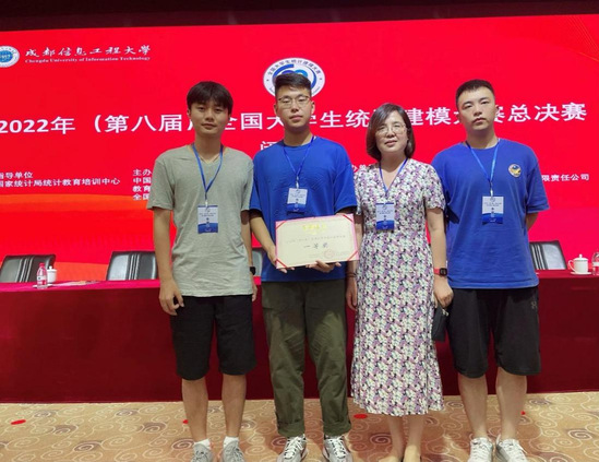 8月27至28日,由中国统计教育学会、教育部高等学校统计学类专业教学指导委员会、全国应用统计专业学位研究生教育指导委员会联合主办的2022年(第八届)全国大学生统计建模大赛总决赛在成都信息工程大学举办。西北师大数学与统计学院共有8支队伍获得省级奖,其中2支队伍进入全国赛。经过激烈角逐,代表甘肃赛区的我校2021级应用统计专业硕士研究生肖阳田、王振旭和李杰获得研究生组全国一等奖,指导教师肖鸿民教授获得“全国大学生统计建模大赛优秀指导教师奖”。