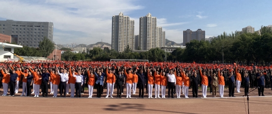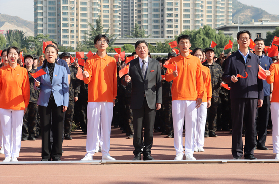 上午10时,在学校西操场,全体师生庄严肃立,伴随着嘹亮的国歌,五星红旗在校园冉冉升起。学校青年马克思主义者宣讲团和新生代表共同诵读《请党放心 强国有我》,同学们以掷地有声、铿锵有力的誓言表达了坚定信仰跟党走,争当伟大理想追梦人和生力军的决心信心,表达了青春心向党,践行立大志、明大德、成大才、担大任的时代要求。仪式最后,全体师生高唱《歌唱祖国》,用歌声献礼祖国,祝福伟大祖国繁荣昌盛、明日圆梦。