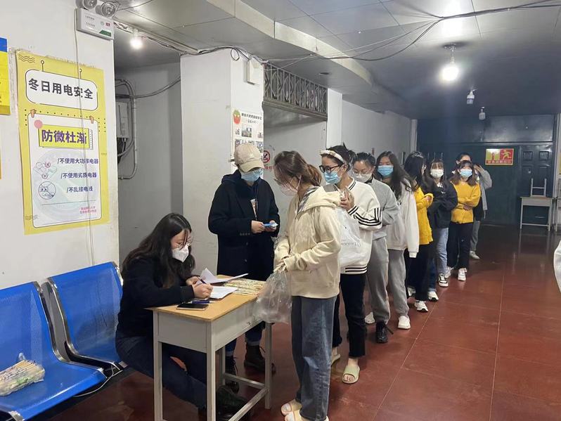 落实党校学生公寓返校学生“一扫四查”疫情防控政策,实时掌握学生健康状况和健康码异常情况,第一时间统计上报并解决。实行“专班临时党支部+楼层临时团支部+学院辅导员”三保险学生出入登记工作举措,临时党支部统筹协调进行出入登记,楼层团支部带队提餐、洗澡、开展体育活动,学院辅导员再次核实清点学生人数,实现定时、定点、定位、定人的“四定”专班管理目标,筑牢学生管理、疫情防控精准安全屏障。深化学生网格化管理,坚持“应检尽检、不漏一生”的核酸检测原则,采取“宿舍监督+楼层清点+专班登记”的工作方式,现已形成“点位式”“互助式”管理模式。目前已组织党校学生公寓核酸检测14次,检测人次达12000人次,100%完成检测,为校园疫情防控撑起了坚不可摧的“保护伞”。