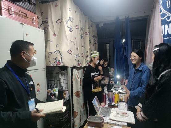 专班工作组积极协同后勤保障部、校医院等相关部门和各学院,按照学校总体部署要求深入推进工作。面对云亭校区处于与兰天公寓、党校公寓学生交融的“枢纽站”特点,入住的有本科生、博士研究生、留学生、青年教师以及餐厅工作人员、保洁、保安、施工人员等后勤保障工作人员,加之周边商铺较多等复杂情况,专班老师每天对学生核酸检测、配餐严格管理,保证云亭校区学生与兰天公寓、党校公寓住宿学生无交集。专班工作人员利用学生课后时间多次走访学生宿舍,了解学生思想动态,宣讲学校疫情防控规定,组织学生正常开展学习活动,调节化解矛盾。开通疫情专班学生工作服务热线,进一步畅通学生诉求渠道,第一时间回应和处理学生反映问题。专班老师每天上午、晚间对所有公寓周边进行巡逻,确保疫情防控“零风险”。