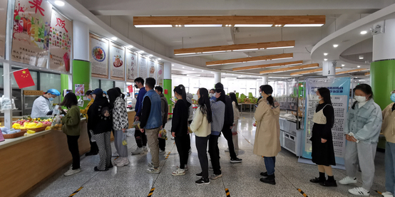 1021日,针对学生提出的封闭管理期间水果供应不足问题,知行校区工作专班第一时间协同后勤保障部门,组建由学生代表和管理人员组成的后勤保障部门质量监督委员会,在知行餐厅一楼为同学们提供新鲜的平价水果。首日中午,1000余斤品种多样的水果被同学们“抢购一空”。