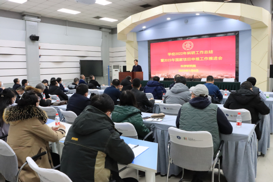 会上,科学研究院负责人重点从项目申报与立项、基地平台建设、成果管理、学术交流和制度建设等方面对学校2022年科研工作整体进展和亮点工作进行了总结,结合学校科学研究“十四五”发展规划,部署了2023年的科研工作,重点就国家自然科学基金和国家社会科学基金项目的申报注意事项和时间节点做了详细安排。