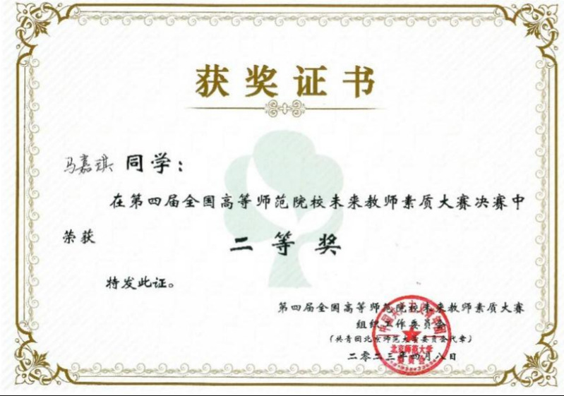 4月8日,第四届全国高等师范院校未来教师素质大赛在北京师范大学结束,日韩人妻无码一区二区三区久久99_日韩精品一区二区三区中文在线_无码日韩精品一区二区免费_久久久91精品国产一区二区三区_亚洲精品久久久一区黄无码_国产91精品一区二区麻豆网站_成人国内精品久久久久影院物理学专业本科生马嘉琪同学获得复赛一等奖,并在决赛中以第四名的好成绩获得二等奖。同时,物电学院宋燕和颉录有老师获得优秀指导教师奖,西北师大获得优秀组织奖。