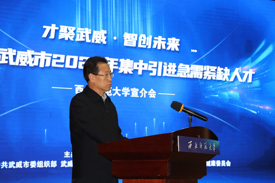 421日,武威市2023年集中引进急需紧缺人才宣介会在西北师大举行。西北师大党委书记贾宁,武威市委常委、组织部部长关维斌出席并讲话。西北师大党委常委、副校长李建民出席。武威市委组织部、人社局、教育局和各县区相关负责人及部分中学校长,西北师大相关负责人参加。