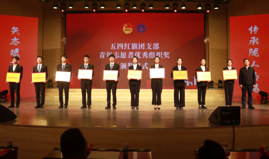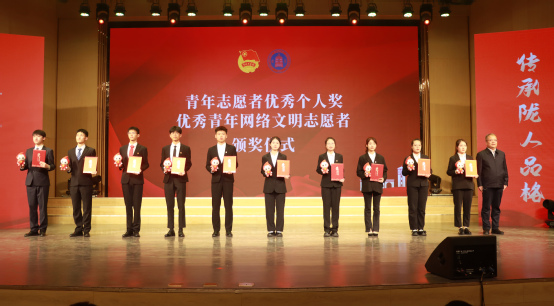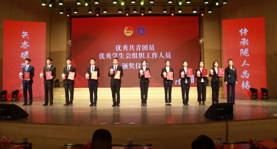贾宁为“青年五四奖章”获奖集体和个人颁奖;刘玉泉为“五四红旗团委”获奖单位负责人颁奖;田澍为“优秀共青团干部”获奖代表颁奖;李建民为“五四红旗团支部”和“青年志愿者优秀组织奖”获奖代表颁奖;邓小娟为“优秀共青团员”和“优秀学生会组织工作人员”获奖代表颁奖;张明军为“青年志愿者优秀个人奖”和“优秀青年网络文明志愿者”获奖代表颁奖。