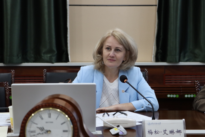 梅松·艾琳娜对我校的热情接待表示感谢,并就学生联合培养、中文/俄语师资互派、在线课程和学术资源共享、学术期刊合作等具体议题同我校相关学院负责人进行深入交流。