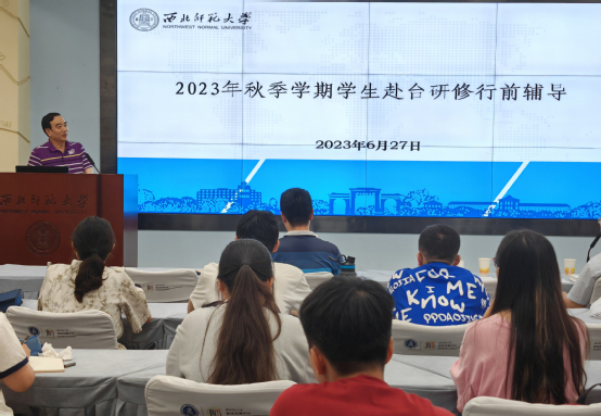 627,西北师大召开2023年暑期和秋季学期赴台交流学生行前辅导培训省政府台湾事务办公室交流宣传处二级调研员杜丛建作专题辅导,西北师大党委常委、副校长田澍出席会议并讲话,学校港澳台办公室负责人、教务处和研究生院工作人员及暑期秋季学期赴台交流的94名本科生研究生参加会议。