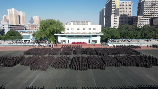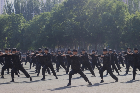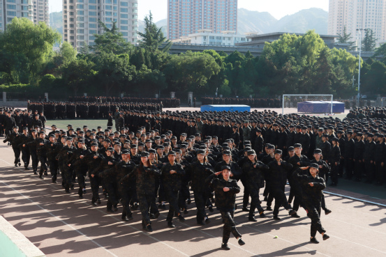 在《我的校园在黄河岸上》的校歌声中,军训会操表演落下帷幕。