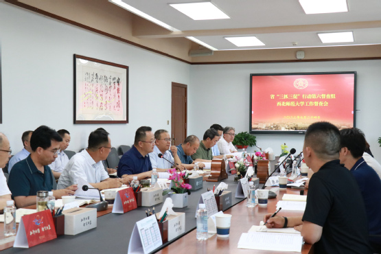 7月24日下午,省“三抓三促”行动第六督查组组长、省委教育工委专职副书记张晓东一行5人督查指导学校教育学、简牍学一流学科建设情况。学校“三抓三促”行动领导小组组长、党委书记贾宁主持会议,学校“三抓三促”行动领导小组副组长、办公室主任、纪委书记、监察专员马庆和领导小组办公室成员、相关部门与学院负责人参加会议。