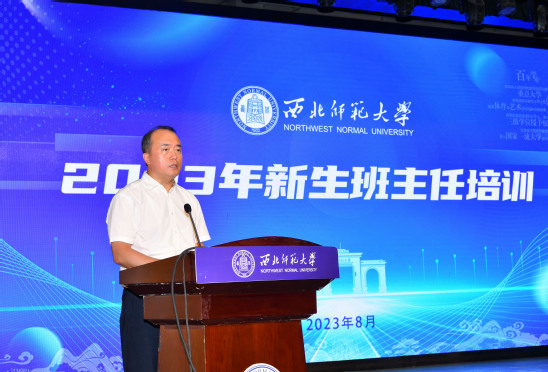 828日下午西北师大2023级新生班主任培训班开班式在学生发展中心举行。校长、党委副书记王占仁教授,党委常委、党委宣传部部长、副校长邓小娟教授出席并讲话。全体2023级新生班主任和学校党委组织部、人事处、党委学生工作部、教务处、研究生院、校团委、心理健康教育服务中心等单位负责人,各学院党委(党总支)书记、副书记300余人参加了开班式。