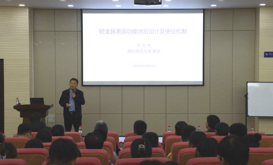 10月13日,西北师大化学化工学院举办“术圆论坛”第一期暨论坛开讲仪式,党委常委、副校长李文生教授作为主讲嘉宾为师生带来了题为《轻金属表面功能涂层设计及使役损伤机制》的报告。