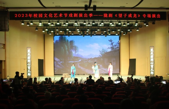 10月18日,由甘肃省陇剧团表演的经典陇剧《望子成龙》在西北师大云亭校区音乐厅精彩上演。学校离退休教师代表、大学生秦腔团、京剧团等学生社团代表400余人现场观看演出。