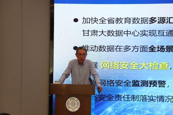 甘肃省委教育工委委员,省教育厅党组成员、副厅长曾华辉出席并作报告;西北师大党委书记贾宁出席并致辞;西北师大副校长张明军和甘肃省各高校分管教学、科研、人事的相关负责人及甘肃省教育厅相关处室负责人在现场参加会议;各高校组织教务、科研、人事部门主要负责人和有关人员在学校分会场线上参会。