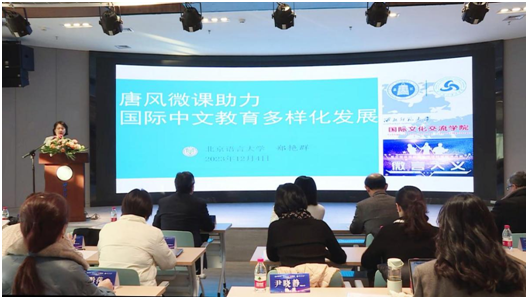 研讨会上,北京语言大学郑艳群教授、西双版纳职业技术学院毛卫红副校长、上海大学裴雨来教授、对外经济贸易大学周晨萌教授、东北财经大学单良教授、全国研究生汉语教学微课大赛总执行人施雅利分别作了题为《唐风微课如何助力国际中文教育的多样化发展》《加强澜湄国家教育合作与交流,助力澜湄国家命运共同体建设》《研究生微课标准的研发、推广与微课质量的提升》《关键性事件在国际中文教育研究生成长中的作用研究》《数字赋能与国际中文教育微课创新》《数字化国际教育:改善微课建设,优化人才培养》的主旨报告。