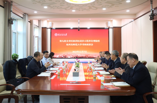 12月7日,省民委党组成员、副主任王宇卫一行5人赴西北师大开展“第九批全省民族团结进步示范单位考核验收暨互观互检”专项工作。党委书记贾宁代表学校做工作汇报,党委副书记刘玉泉及学校民族宗教工作领导小组成员单位主要负责人参加。