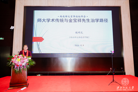 本次京华论坛由北京校友会副会长、中科院北京植物研究所研究员、中国科学院大学教授、国际自然变异与比较基因组学委员会共同主席郭亚龙主持。校友会顾问、中国社会科学院登峰学者、博士生导师、中国经济史学会会长魏明孔教授做了《师大传统与金宝祥先生治学路径》的主题报告;北京校友会顾问、中国人民大学二级教授、博士生导师肖群忠教授做了《传统孝道的当代价值》的主题报告;北京林业大学教授、博士生导师、国家“863”等项目主持人成仿云教授做了《从国色天香到花开富贵——牡丹的前世今生》的主题报告。