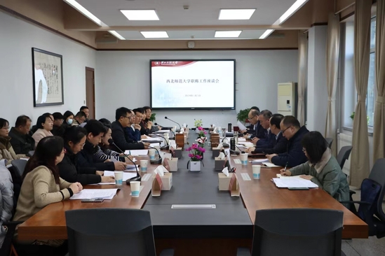 1月3日下午,西北师大召开职称工作座谈会。校长、党委副书记王占仁出席并讲话。党委常委、副校长田澍主持座谈会,教务处、研究生院、科学研究院、人事处等相关负责人及教师代表参加会议。