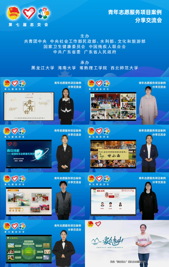 直播中,外国语学院《多语协同推“播”助“农”:多语种助农直播带货》、旅游学院《关山新农计划:乡村振兴志愿服务的践行者》、历史文化学院《甘小西:创新志愿赋能儿童友好型博物馆建设》、校学生会《新青年助农计划:打通农特品触网“最先一公里”》、社会发展与公共管理学院《青苗计划:乡村儿童社会情感技能提升志愿服务》、音乐学院《音为有你:面向非遗地区的音乐传承及美育推广》、商学院《青鸟铸盾:校园反诈志愿服务》和舞蹈学院《爱在远山:关爱贫困地区儿童身心平衡发展》等项目分别围绕项目目标、项目成效、项目管理、项目创新、项目影响等内容做了展示交流。