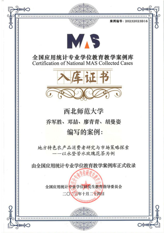 近日,由全国应用统计专业学位研究生教育指导委员会(MAS)指导,全国工业统计学教学研究会、中国现场统计研究会、中国统计教育学会高等教育分会联合举办的“2023第六届全国应用统计专业学位研究生案例大赛结束。西北师大数学与统计学院师生获二等奖案例3个、三等奖案例2个,首次入选全国应用统计专业学位教育教学案例库案例1个。