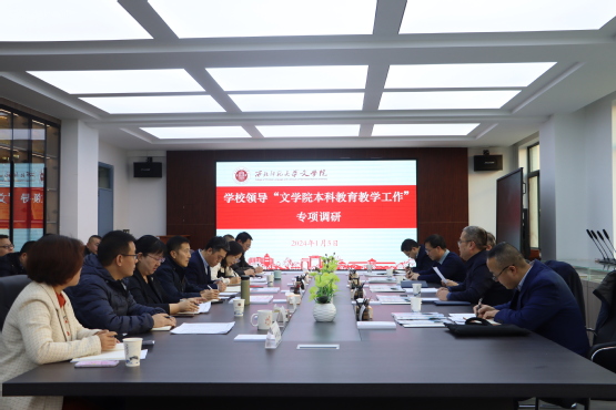 1月5日下午,校长、党委副书记王占仁调研文学院本科教育教学工作。副校长张明军主持座谈会,学校办公室、教务处负责人,文学院班子成员、系所中心负责人、教师代表参加座谈会。