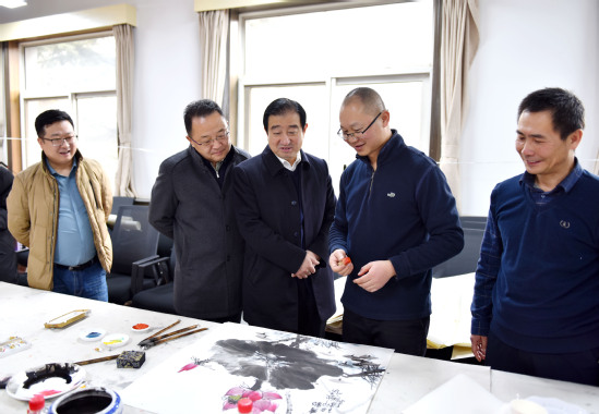 贾宁对民革省委会来校开展活动表示欢迎。他提出,民革省委会着眼于中国共产党领导的多党合作事业的健康发展,对西北师大民革总支部组织建设和发展给予了大力支持,各项工作成效显著。民革省委会书画院10余名书画家亲自上门为我校师生送新春祝福,加强了民革省委会和我校师生之间的交流互动,彰显了民革省委会传承、保护和发展优秀传统文化的新担当新作为。西北师大党委将一如既往地关心、支持学校民革总支部的建设和发展,发挥好收藏、保护、展示、传承优秀书画资源的优势,履行好弘扬优秀传统文化担当者、践行者和传播者的使命,创造好属于我们这个时代的新文化,为中国式现代化甘肃实践贡献智慧和力量。