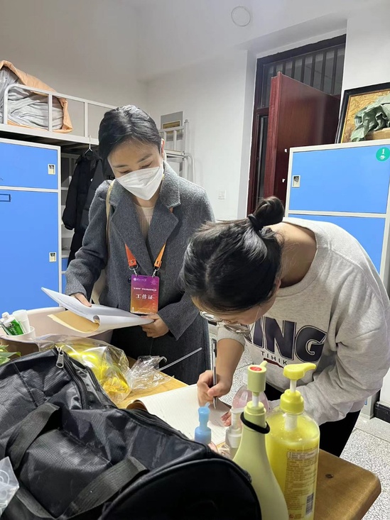 “同学你好,我是这个楼的自我监督岗成员,假期人少请尽量早点安排完实验回到宿舍,离开务必注意用电安全,关于用餐和浴室的问题昨天帮你反馈了学校,学校会保障学生正常的生活,请安心安排你的实验进度,顺利结束后早日和家人团聚.....”像这样收集并反馈同学们意见,深入宿舍检查门窗和电闸关闭情况,提醒同学们注意做好防火、防盗、防诈骗等安全工作,筑牢安全防线;全面了解留校学生思想动态和学习生活情况,耐心听取并记录同学们对假期生活保障、公寓管理等方面提出的诉求,积极回应、及时反馈,有效提供各项帮助,是志愿者每天必做的工作。